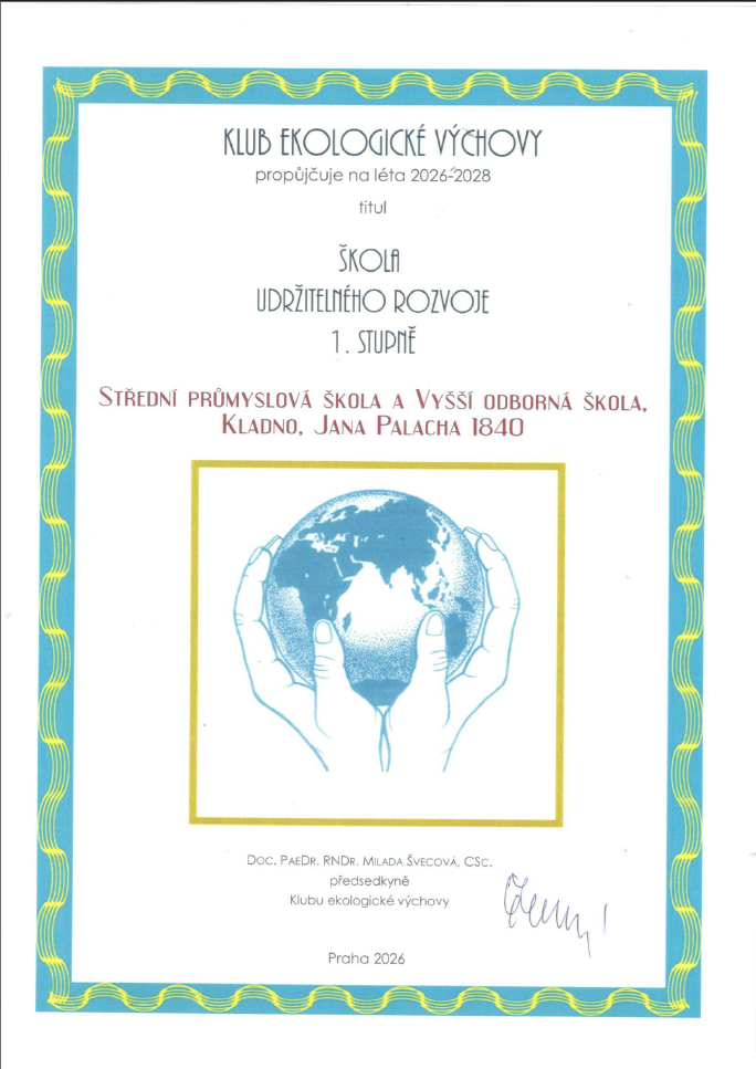 V rámci ekologické výchovy a programů udržitelného rozvoje se naši studenti s úspěchem účastní projektu Enersol a také soutěží např. NSEV Kladno